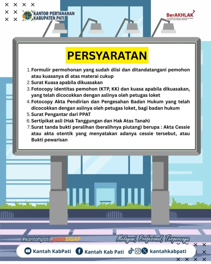 informasi penting terkait peralihan hak tanggungan melalui mekanisme cessie. Sosialisasi ini dilakukan melalui media visual yang mudah dipahami dan disebarluaskan melalui kanal digital resmi.