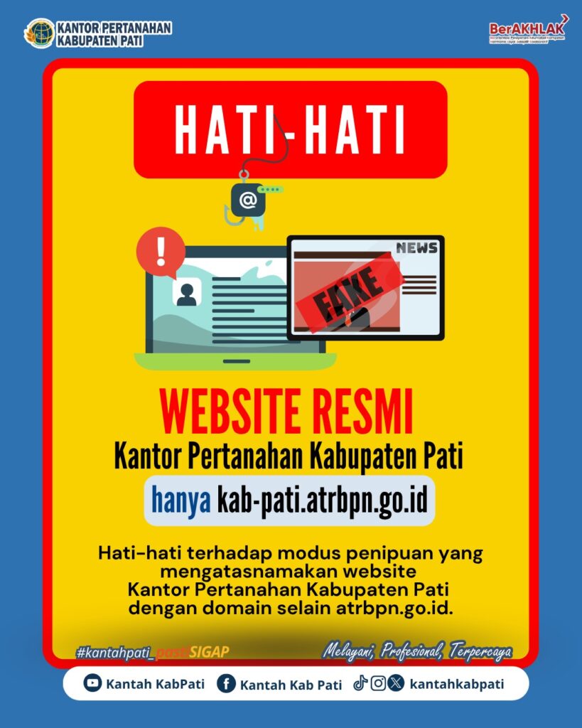 Website Resmi Kantor Pertanahan Kabupaten Pati hanya kab-pati.atrbpn.go.id.